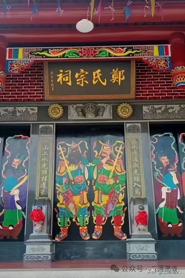 宗祠的大门,庄重而肃穆。门楣之上,“郑氏宗祠”四个鎏金大字熠熠生辉,彰显着家族的姓氏与传承。大门两侧,色彩绚丽的门神画像威风凛凛,身着战甲,手持兵器,目光如炬,似在守护着宗祠内的安宁。门柱上镌刻着精美的楹联,对仗工整,字体苍劲有力,蕴含着深厚的文化底蕴与家族期许。