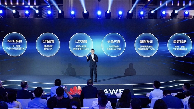 华为云创新性地推出采用全对等互联架构的CloudMatrix 384超节点。这项技术创新跳出单点技术限制,走向系统性、工程性的创新算力架构,直面通信效率瓶颈、内存墙制约、可靠性短板三大技术挑战。通过新型高速互联总线实现384 张卡互联成为一个超级云服务器,最高提供300Pflops的算力规模,比业界同类产品领先67%。华为云副总裁黄瑾表示,华为云CloudMatrix 384超节点具备MoE亲和、以网强算、以存强算、长稳可靠、朝推夜训、即开即用六大领先技术优势,以系统架构创新重新定义新一代AI基础设施。