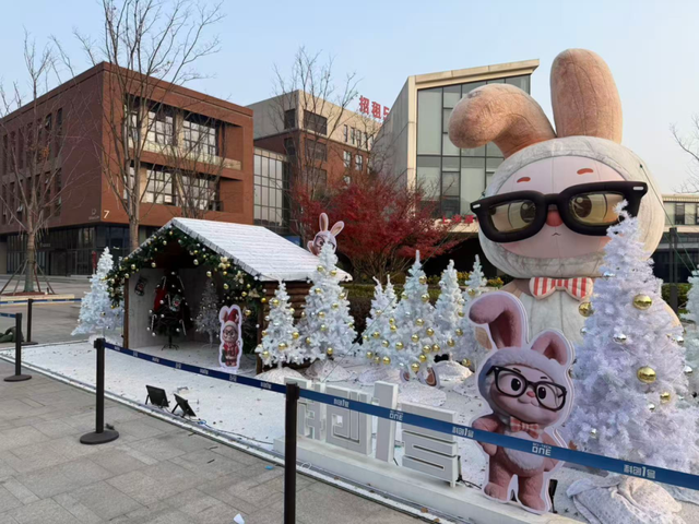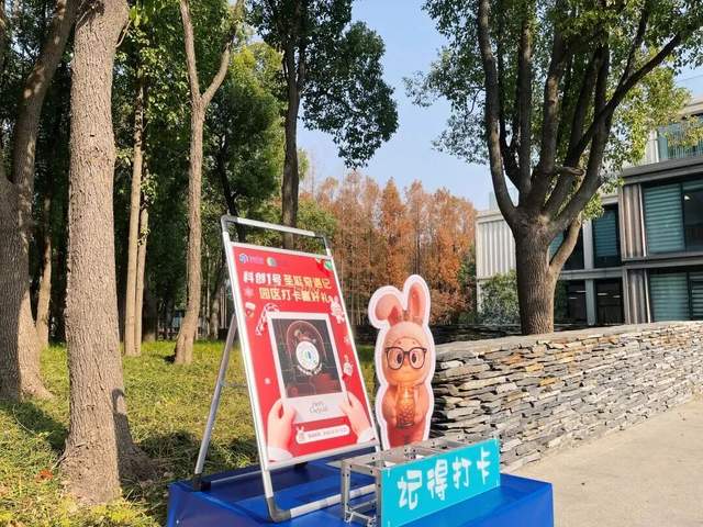 踏入科创 1 号 1 号门,高大的圣诞树带你进入童话世界,可爱的圣诞小兔向你问好,热情欢迎每一位到来的朋友。