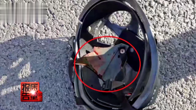事故中的受害者被破碎的头盔刮破眼睛。图片来源:央视网