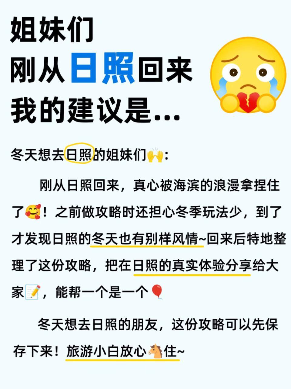 姐妹们,前几天刚去了一趟日照,总结了很多自己的经验,刚到家就忍不住分享给大家🙌!