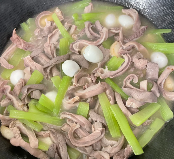 烹饪过程讲究快速利落。炒锅烧热,倒入适量的植物油,待油温升起,先下入姜片和蒜片煸炒出香。紧接着将肚条倾入锅中,快速翻炒,让热油将其表面微微收紧。此时沿锅边烹入一勺料酒,进一步去腥增香。随后加入少许高汤或热水,水量以能略微浸没食材为宜,调入适量的盐和少许白糖提鲜,用中火稍作焖烧,使肚条充分吸收汤汁的味道。