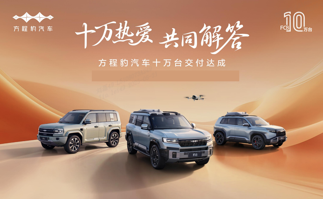 豹5是2024年新能源硬派越野销量冠军,同样也是25年1-4月硬派越野的销量冠军,而豹8在如今市场竞争激烈的前提下,25年1-4月的成交均价达到了40万,在40万以上的新能源SUV里排名前3。而在今年的5月20日,仅仅用时18个月的方程豹汽车,用极快的速度交出了一份交付10万台的答卷。由此可见,好的产品力和品牌力,让方程豹汽车在公务用车和民用车都双线开花。