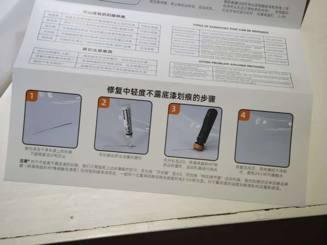这抛光机宣传“1分钟快速修复”,估计只针对微小划痕,我的划痕属于重度,摸上去表面有凹凸不平感,开了最大档位反复抛光,最终花了1小时才基本抛干净,用掉了整整一管研磨剂。