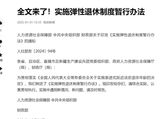 目前由中央定调,弹性退休政策已经落地,来看看情况如何。