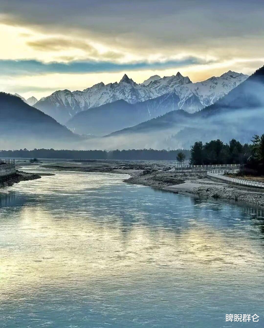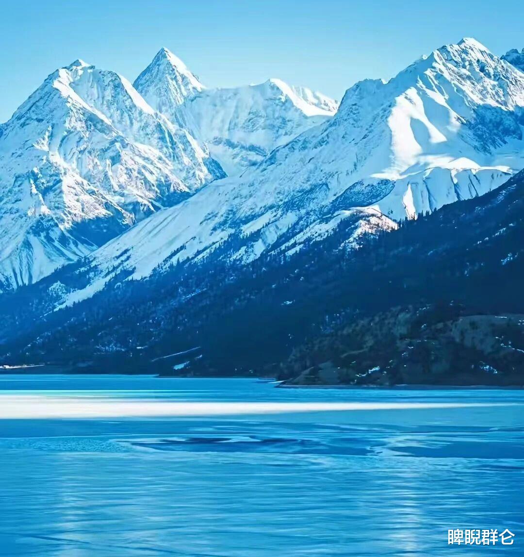 清晨七点,薄雾如纱,冰封的湖面下暗流涌动,倒映着雪山的第一缕金光。
