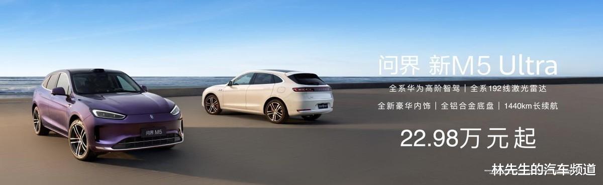 问界新M5 Ultra,售价22.98万元起,新增颜色选择,全系标配舒云座椅、怀挡设计、中控储物间,女王副驾还新增座椅无缝四向腿托,这配置,这价格,真的太香了!192线激光雷达和4D毫米波雷达的加持,让驾驶更安全、更便捷。纯电和增程两种版本可供选择,满足不同用户的需求。