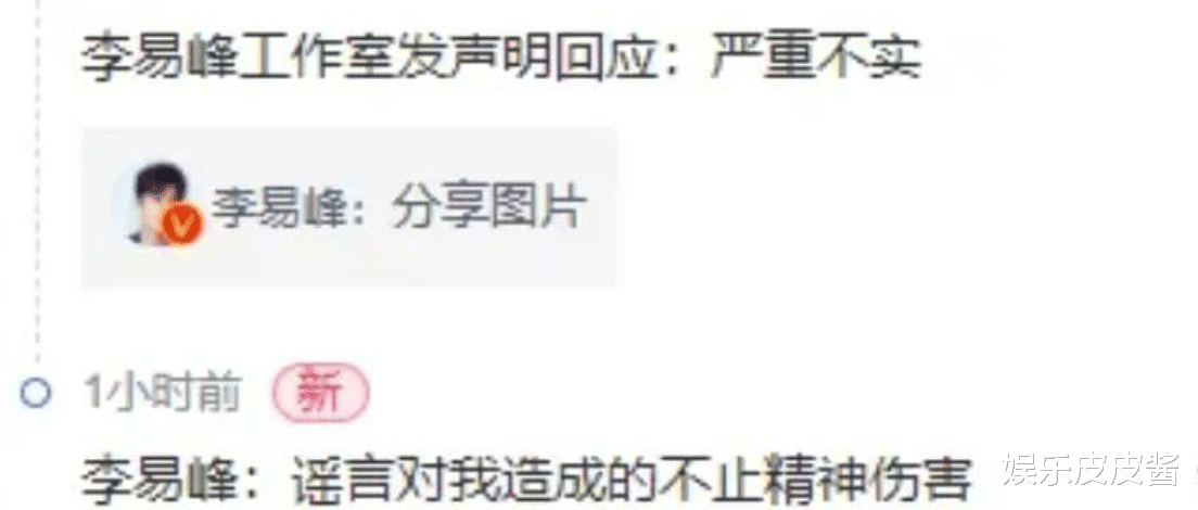 面对网上的传播消息,李易峰团队第一时间出面否认了这一事实。