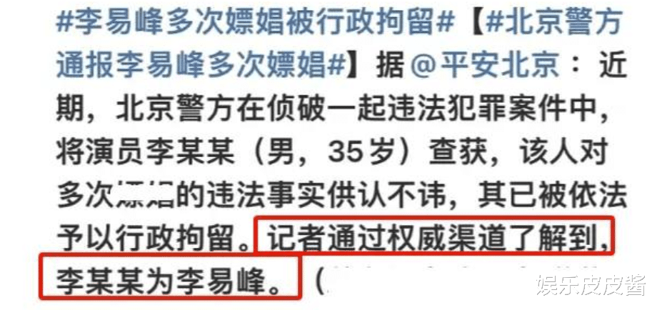 面对这一操作,也间接的证明了警方口中的演员李某某就是李易峰本人。