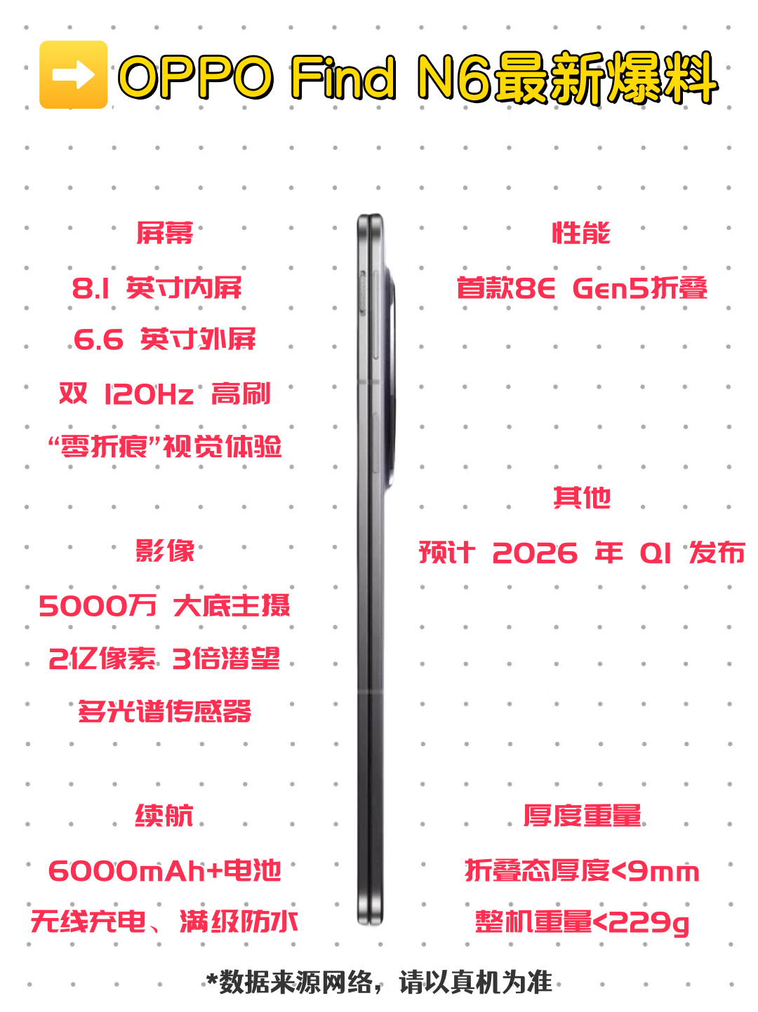 更绝的是,据说OPPO Find N6堆料也是相当猛:骁龙8Elite Gen5、6000mAh+电池容量、3X潜望长焦、多光谱色彩传感器……如果绿厂真能抢在苹果之前发布,那我感觉今年“折叠机皇”还真说不好是谁喔!