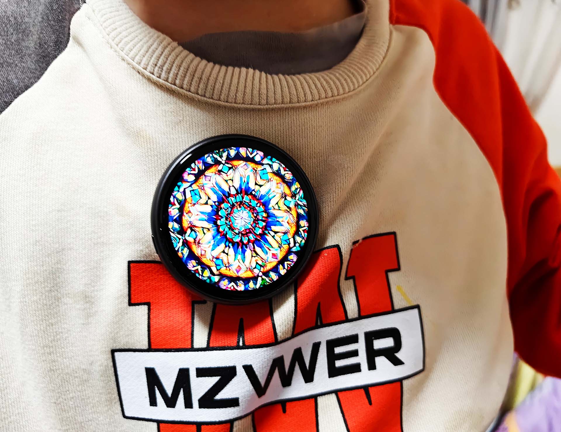 最戳我的是它的核心配置,堪称电子吧唧界的佼佼者。搭载市面上少见的AMOLED屏,和智能手表屏幕同级,比起普通电子吧唧的TFT屏,色彩更鲜艳、显示更清晰,哪怕在户外强光下也能看清内容。全金属边框一体成型,触感细腻,机加工精度很高,质感直接拉满。