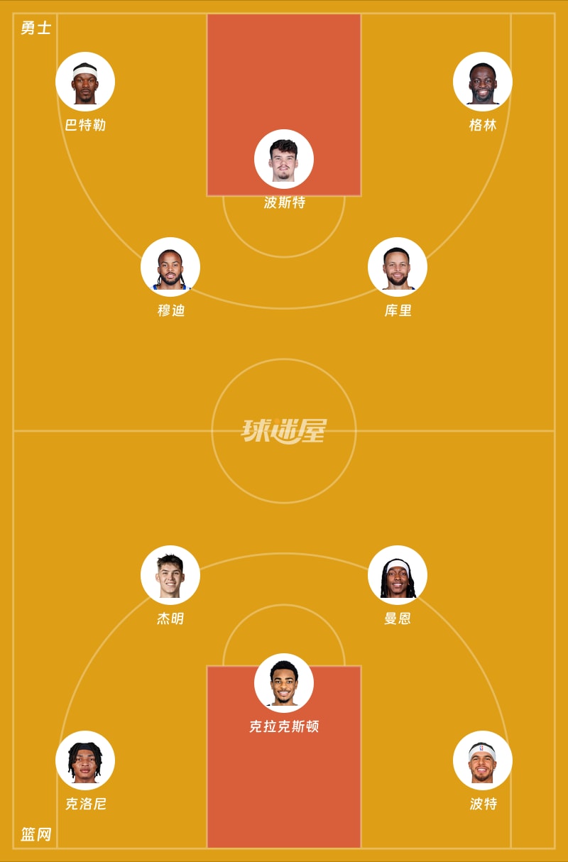 首发来看,科尔教练没有食言,背靠背对篮网,依然派上了库里、巴特勒、格林首发。
