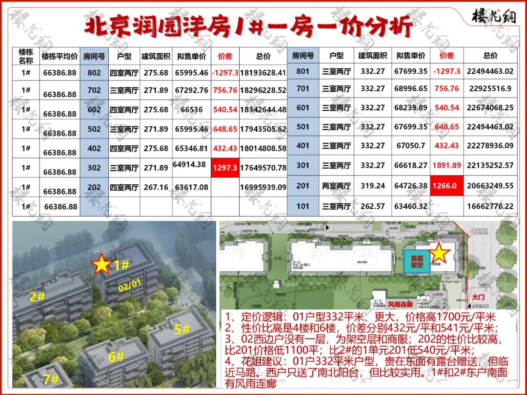 3、花姐建议:2#北面有个车库出入口,所以比3#的均价少了90元/平米左右,1单元802的性价比高,与702价差1513元/平米。