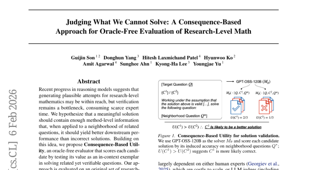 这项由首尔国立大学领导、联合OnelineAI和ORACLE等多家机构共同完成的研究,发表于2026年2月的预印本论文(arXiv:2602.06291v1),为我们揭开了一个颇为有趣的科学谜题:当人工智能面对那些连自己都解不出来的高难度数学问题时,它应该如何判断哪个答案更靠谱?