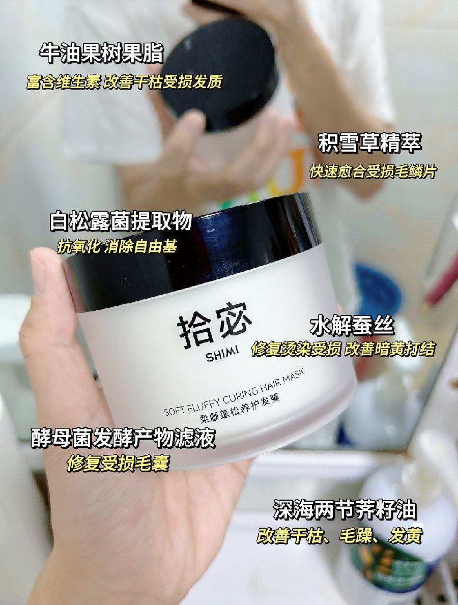 真的试怕了那些宣称加“鱼子酱”的发膜,听起来高级,可用完头发还是像枯草一样没光泽,梳都梳不开。后来才懂,好多都是概念添加,根本没多少实际功效。但拾宓shimi给我的感觉就实在很多,更注重配方本身的安全与有效修护。这款高端沙龙级免蒸发膜,用着安全有效,不伤头皮。即使是频繁烫染受损严重,也能做到深层修复,不是即时假象,而是真的抚平毛躁,减少干枯,改善分叉打结。现在头发能保持一种水光感的柔顺亮泽,而且蓬松不贴头皮,氛围感拉满。它的修护实力,效果真的不输500+卡诗等大牌发膜。