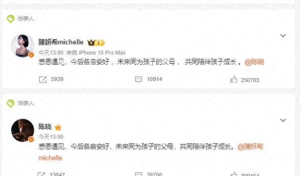 现在的明星离婚都特别理性,不像以前那样闹得沸沸扬扬,他们选择同步发文,内容简单干净,这种处理方式挺成熟的。