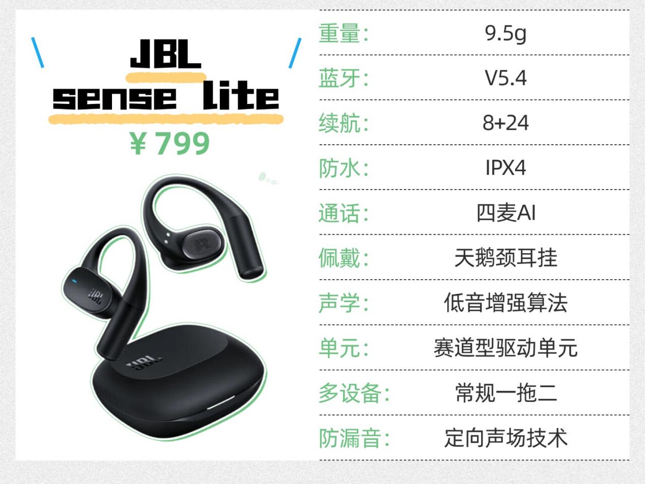 我实际体验过 JBL Senselite 之后,觉得它的整体实用性确实不错,佩戴舒适度表现很出色,连续戴一下午追剧刷视频,耳朵也不会有明显的不适感,长时间使用特别友好。这款耳机搭载了赛道型驱动单元,搭配低音增强算法,声音清晰饱满,层次感也很到位,再加上定向声场技术,能把声音聚拢在耳道内,漏音控制效果比不少同类型产品都要好。唯一的小不足就是续航时间偏短,不过日常通勤、临时出门应急使用完全足够,整体表现很稳定,作为日常入门款耳机十分靠谱,实用性拉满。