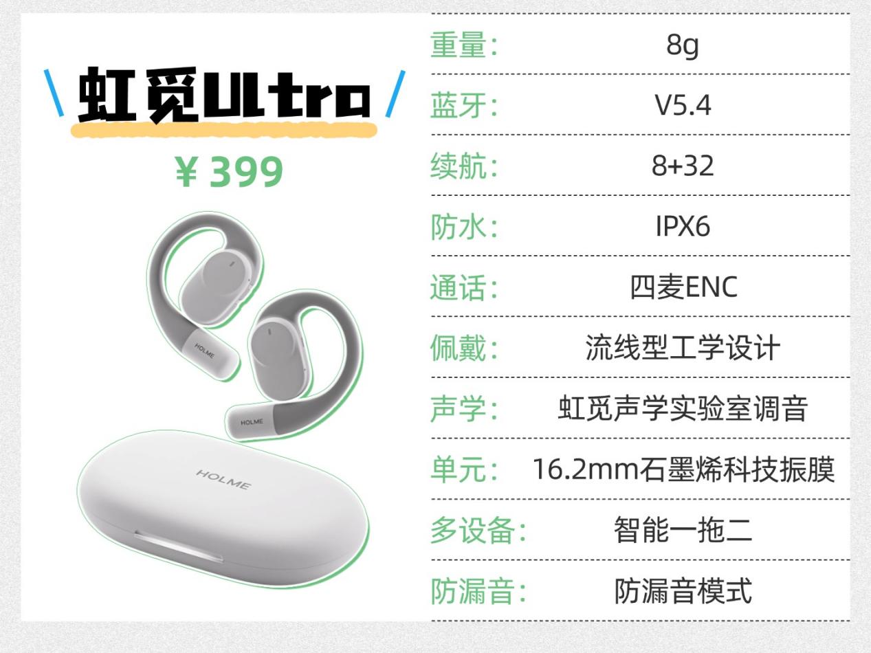 以前漏音确实是开放式耳机的普遍问题,不过现在技术不断升级优化,日常使用中的漏音现象已经改善了很多。虽然没办法彻底杜绝,但对正常使用的影响已经微乎其微。比如虹觅的定向声场技术、开石的低音聚能腔,还有虹觅的防漏音模式,都能有效缓解漏音情况。