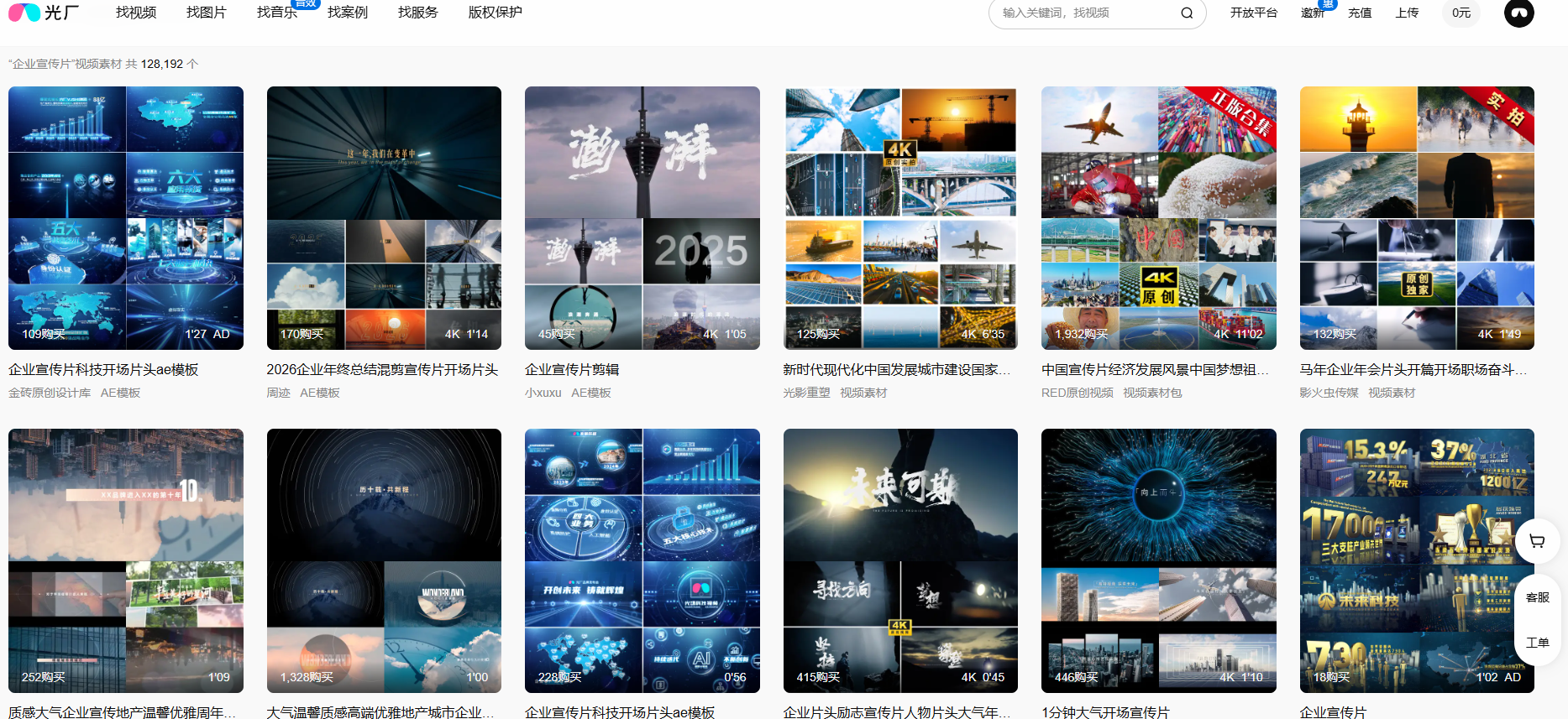 搜索效率:宣传片工期紧,能否通过关键词(如“科技感”、“企业年会”)快速找到精准素材,直接决定了项目进度。光厂的AI搜索算法在中文语境下具有绝对优势。