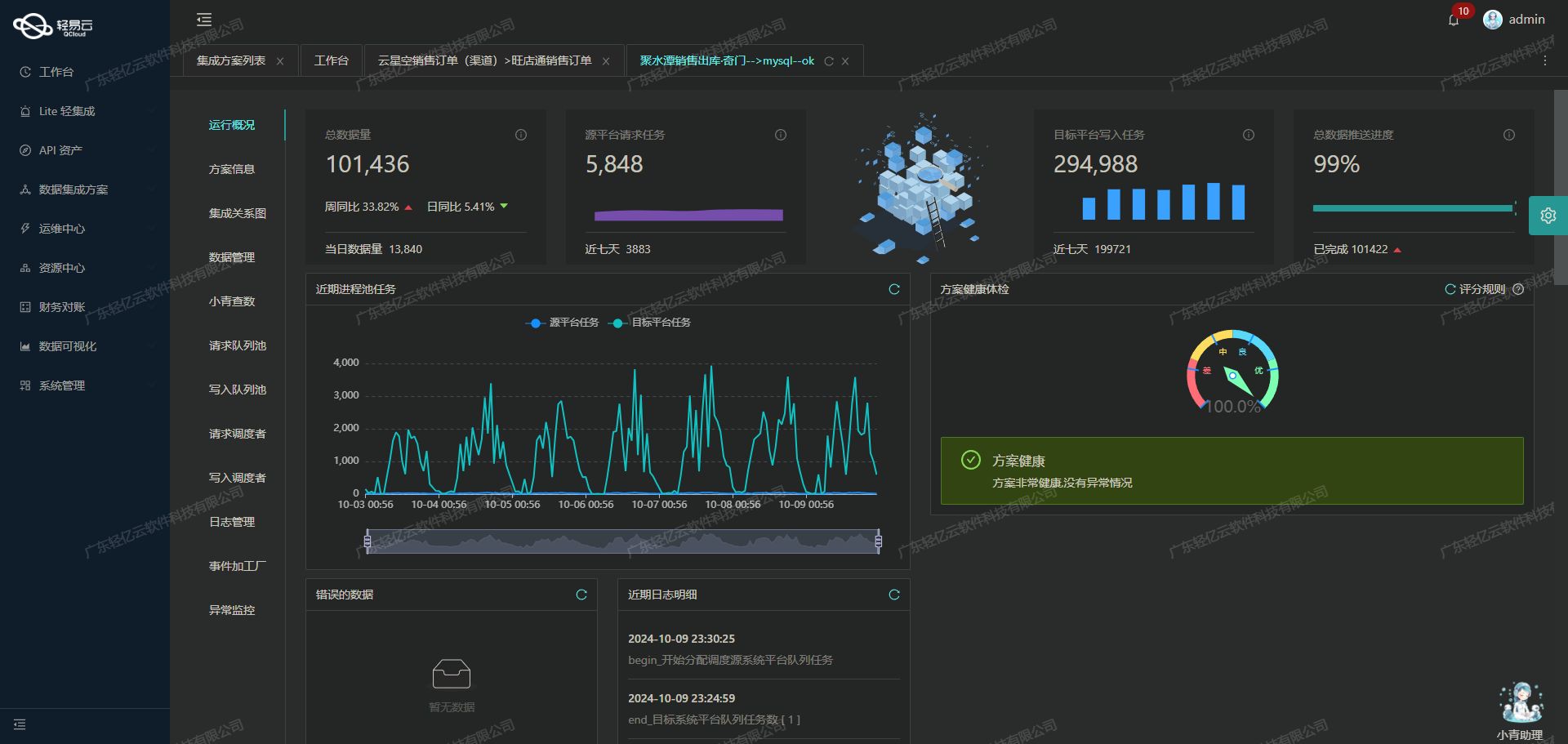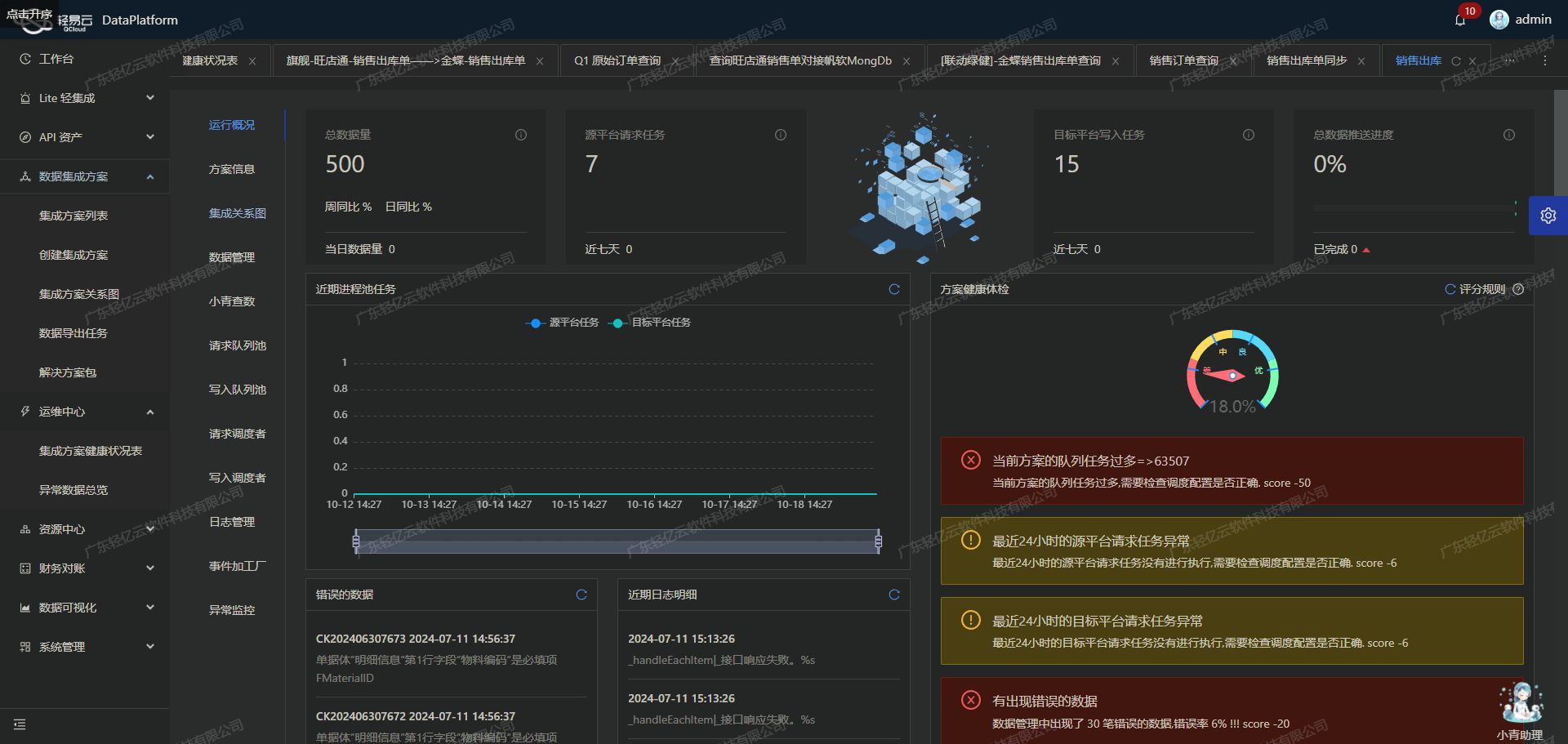 数据质量监控与异常检测为了确保集成过程中的数据质量,可以使用轻易云平台提供的数据质量监控和异常检测功能。这些功能能够及时发现并处理数据问题,例如重复记录、缺失值或不一致的数据格式。同时,通过实时监控和日志记录,可以全面掌握每个环节的数据流动情况,提高整体集成效率。