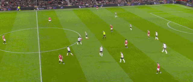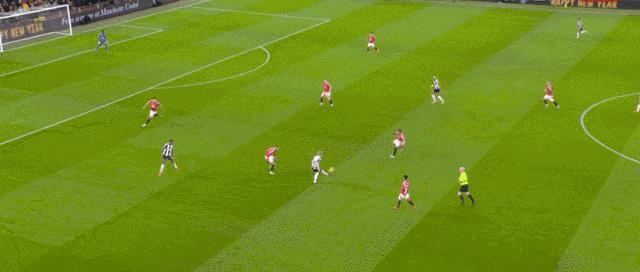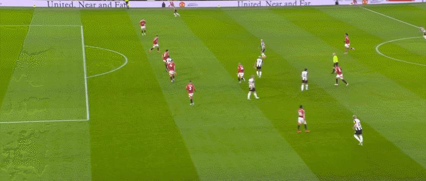 伊萨克和乔林顿先后破门,纽卡斯尔并没有因此停止攻势,最终在上半场录得11脚射门,9名非门将球员参与了射门。除了两翼的防守部署有问题,曼联在中场对抗中的问题更大,卡塞米罗频繁送给对手球权,埃里克森1V1时劣势太大。面对吉马良斯、乔林顿和托纳利的绞杀,曼联完全失去了对比赛的控制,纽卡斯尔可以持续投入后排兵力参与进攻。