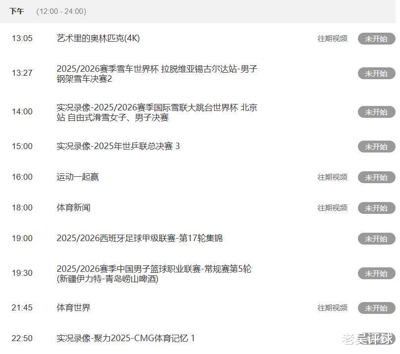 在24日19点30分,CCTV5现场直播新疆伊力特和青岛崂山啤酒第5轮比赛,CCTV5+将会播放2025年世界羽毛球巡回赛总决赛的录像回放。