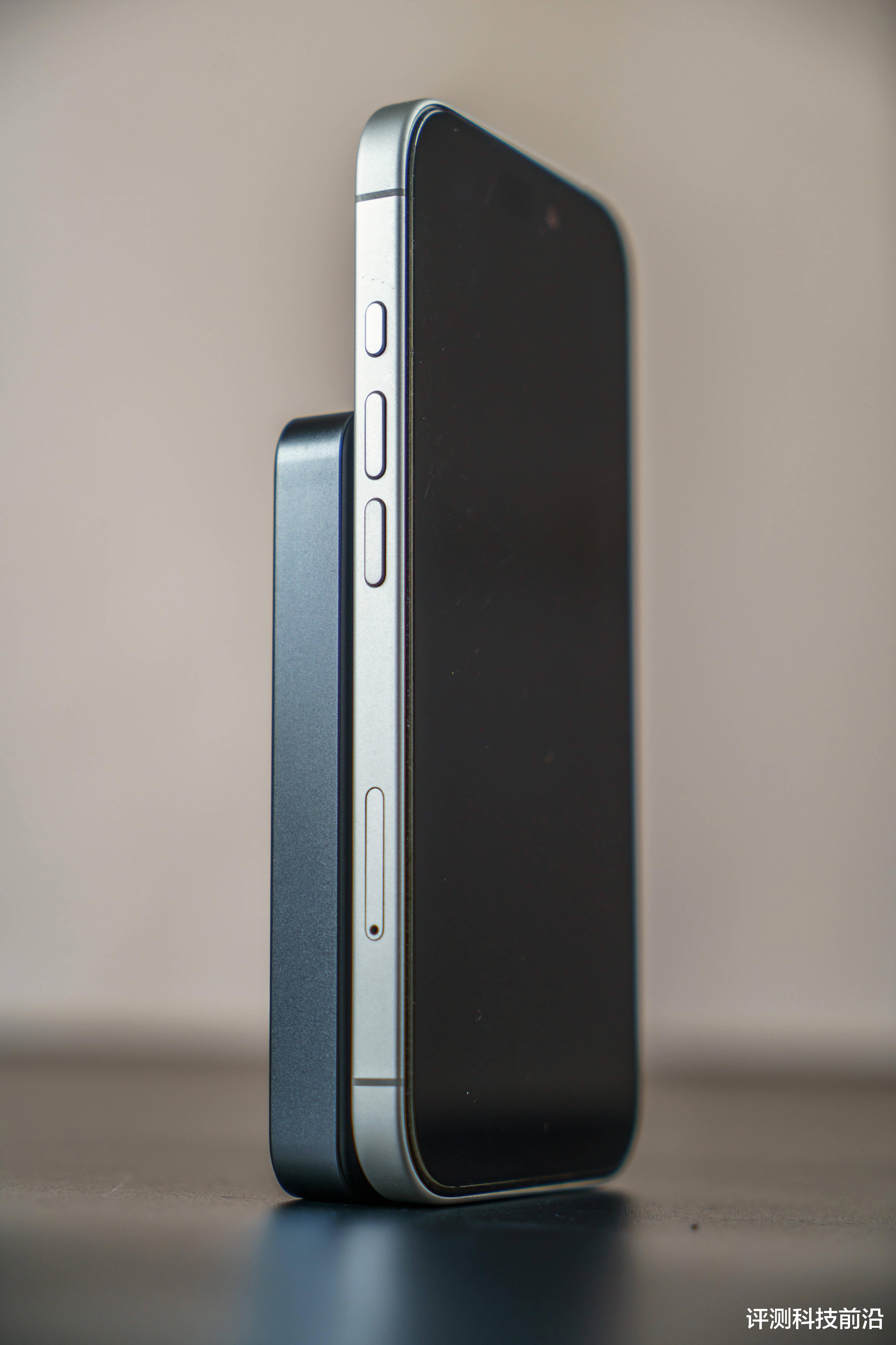 ▼左侧面下方有个C口,底部也有个C口和电源键,其他地方都是光的,厚度大约为1.38cm,比iPhone16稍厚一些,但是和手机机身非常搭配,当然如果对厚度还有更高的要求,那可以选择另一款5000mAh的版本,厚度就只有0.8cm左右,非常薄