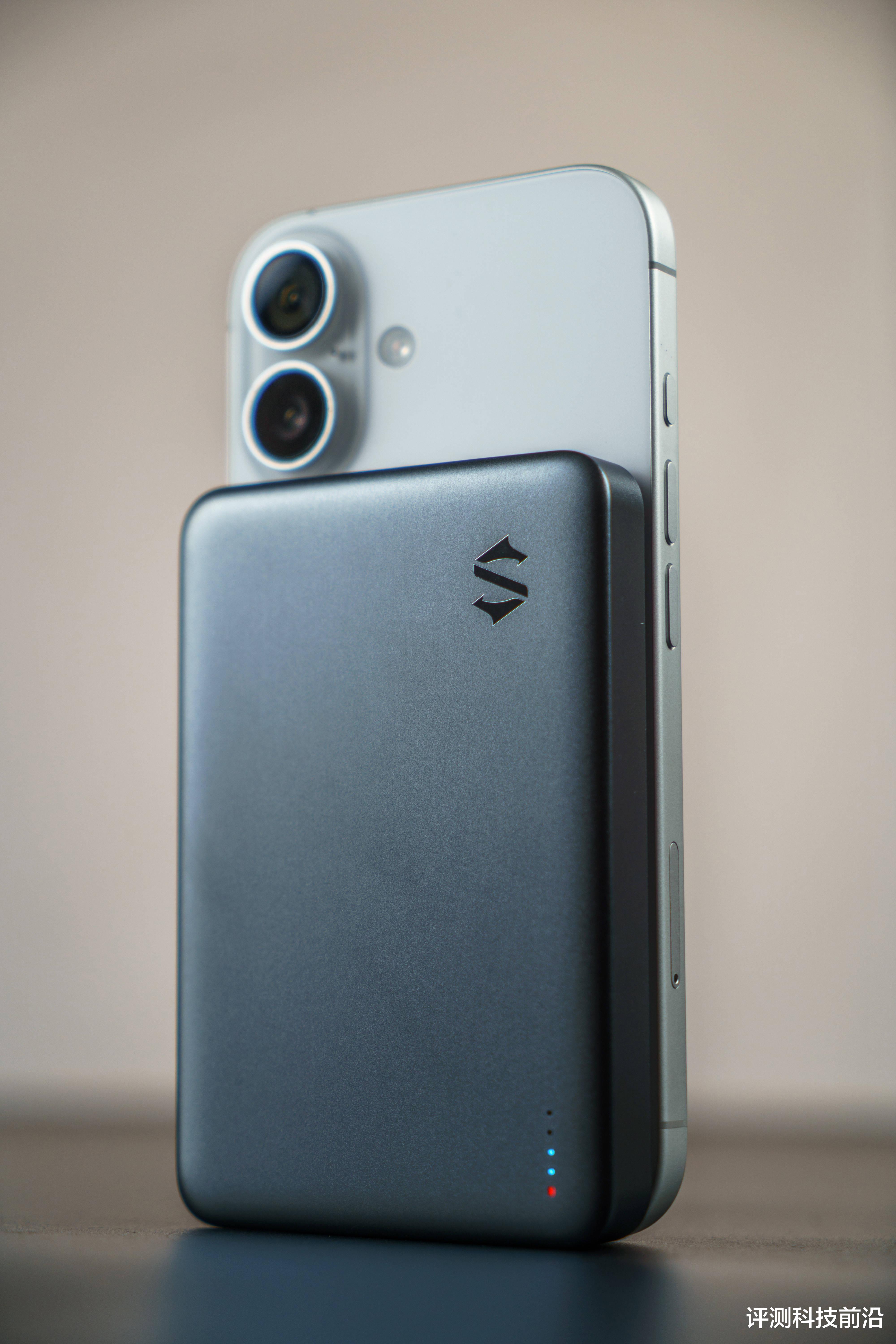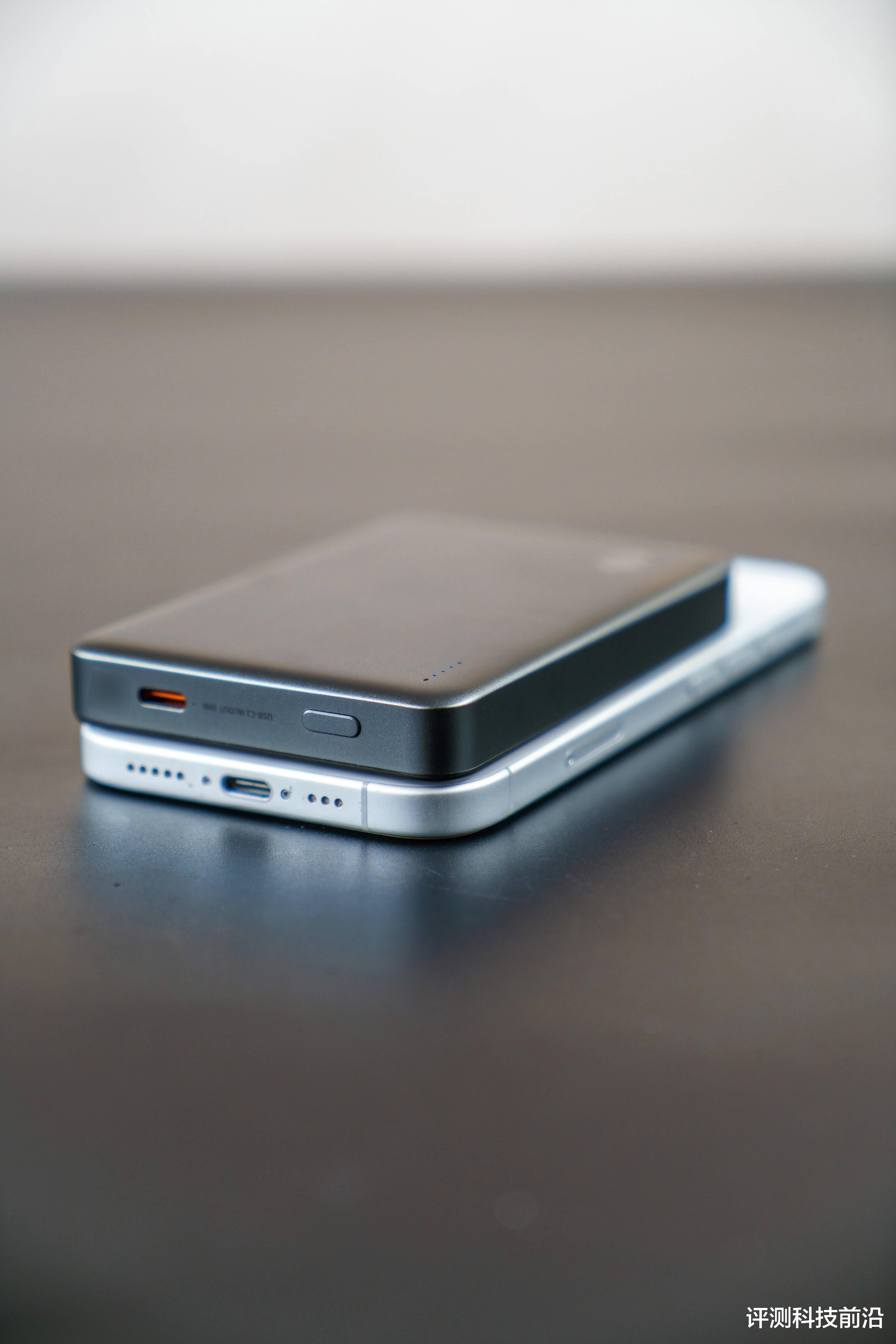 ▼它采用了17颗N52强磁,最高能产生12.8N的磁力,只要你的手机自带磁吸功能,直接贴上去就能自动对准最佳位置,并且吸的很牢,如果不带磁吸充电功能,只需要给手机背面贴上黑鲨引磁片,也能把充电宝牢牢吸上去;并且磁吸的位置设计非常贴合大多数iPhone,不会顶到手机镜头,圆润的倒角边让它在和手机一起握持时也能非常舒适不挌手