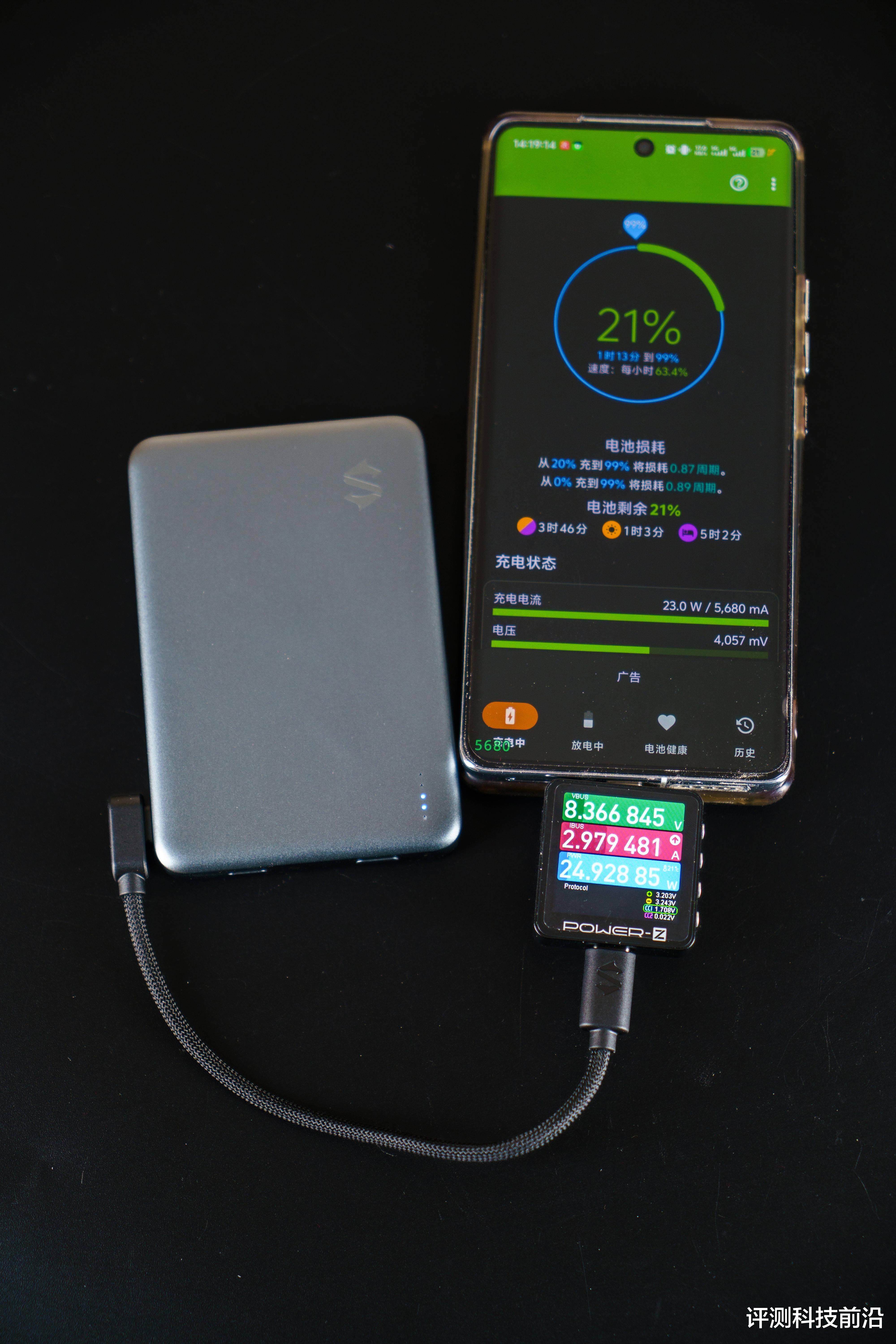 ▼给剩余电量21%的VIVO X100充电,轻松触发FlashCharge,最高充电功率大约是24.9W,还行