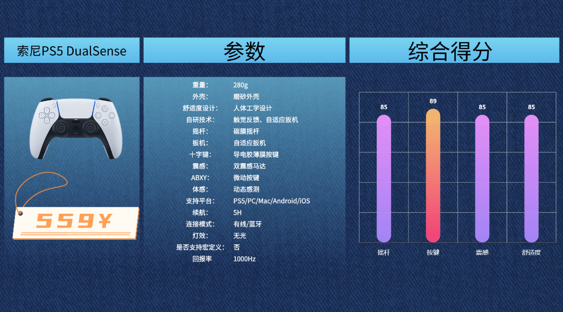 操控层面依旧延续索尼标志性的按键布局,熟悉PlayStation体系的玩家几乎不用学习成本。自适应扳机和震动系统算是它最大的技术优势,不同游戏呈现的力度、震感差异非常明显,赛车游戏里的油门阻尼、射击游戏中的武器回弹都能清晰体现,沉浸感相当强。不过在个别游戏里,扳机阻力会显得偏硬,触觉反馈偶尔也稍微“激烈”了一些,适应之后体验会好很多。手柄支持蓝牙无线和USB-C有线两种连接方式,延迟稳定、兼容PC与主机平台;同时提供触控板、麦克风和扬声器等扩展功能。续航大概在5小时左右,虽然不算突出,但支持插线游玩,续航焦虑基本可以忽略。
