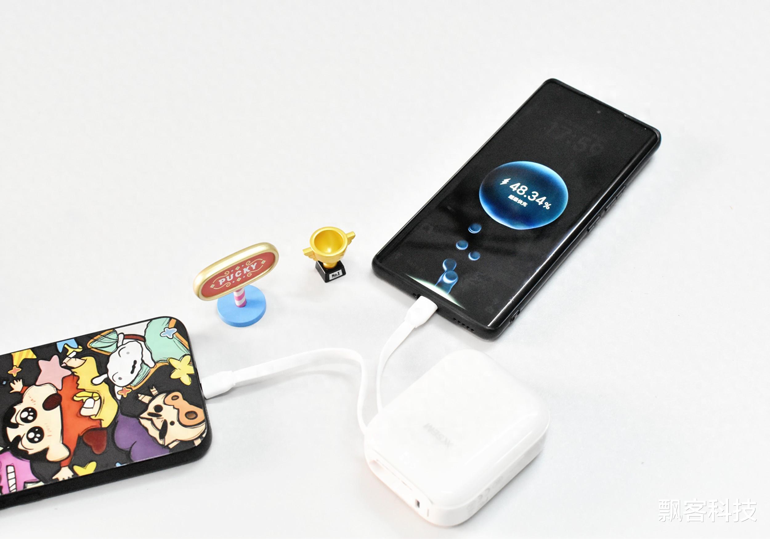 使用时,充电宝自带双线22.5W快充能满足双设备同时充电,随身携带随时可以为手机补充电量,实测在手机电量快要用完时,30分钟左右就能回血接近50%,效率比我之前的旧充电宝快了不少。