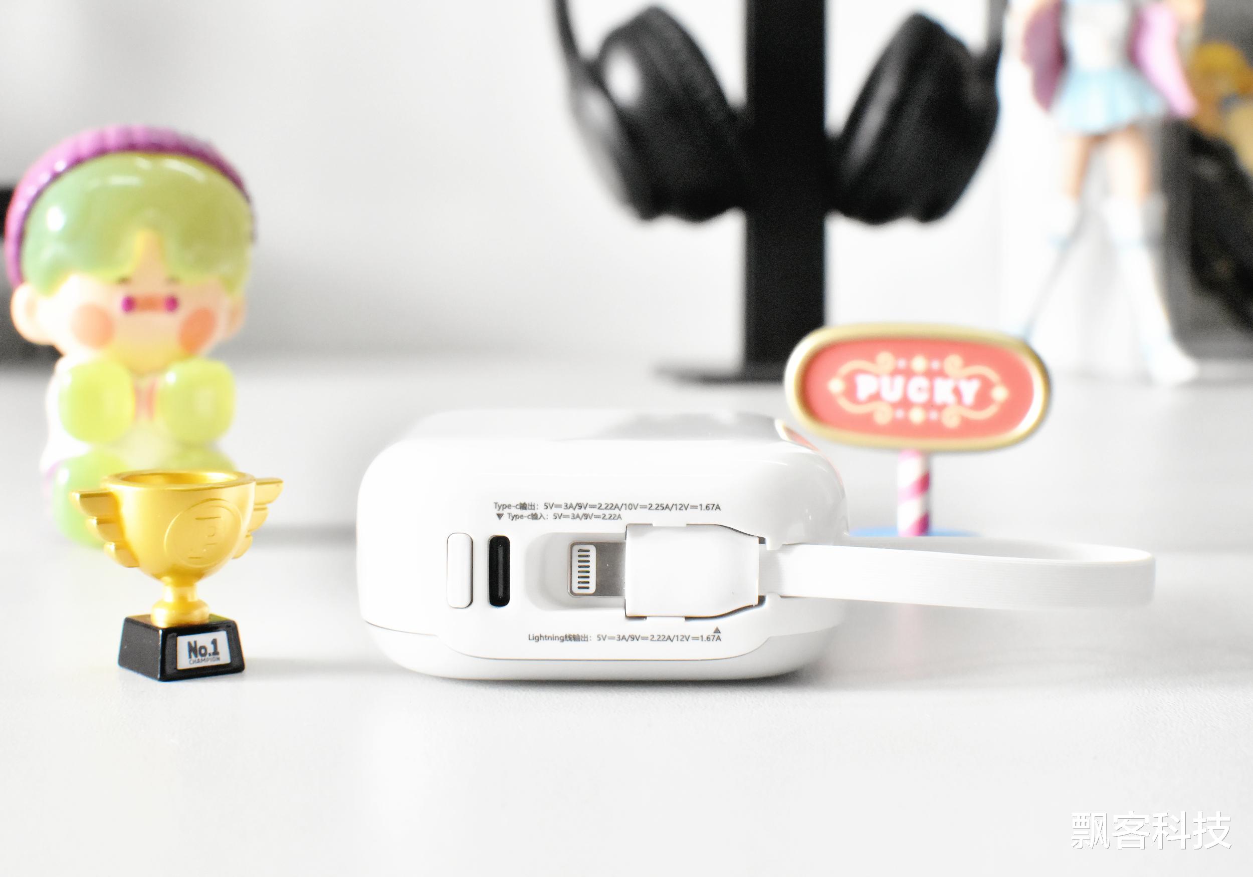 自带双线 22.5W 快充--内置 Lightning + Type-C 双接口自带线,兼容苹果、安卓、平板等主流设备。线材用料扎实,而且有专用的卡槽固定收纳,造型轻巧美观。