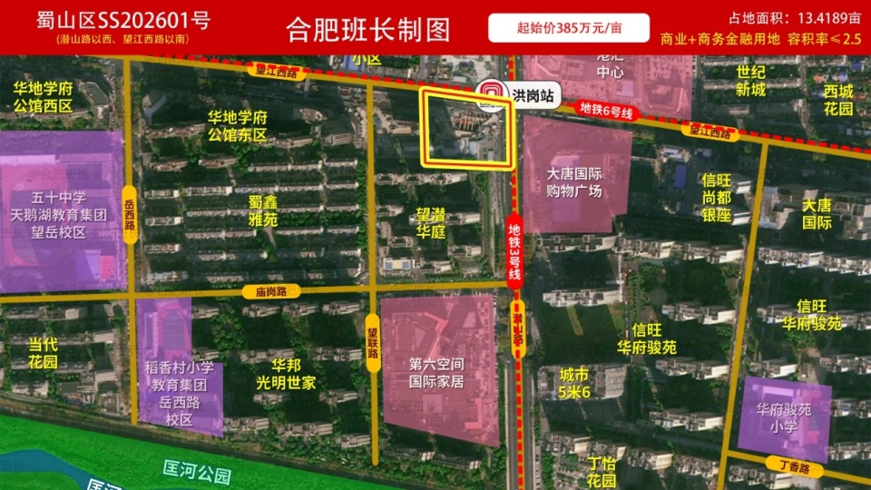 此外,今天还有一宗商业+商务金融用地出让,位于蜀山区潜山路以西、望江西路以南,占地13.4189亩,其中商业分摊用地不小于总用地面积的50%,商业计容建筑面积占计容总建筑面积比例不低于50%。