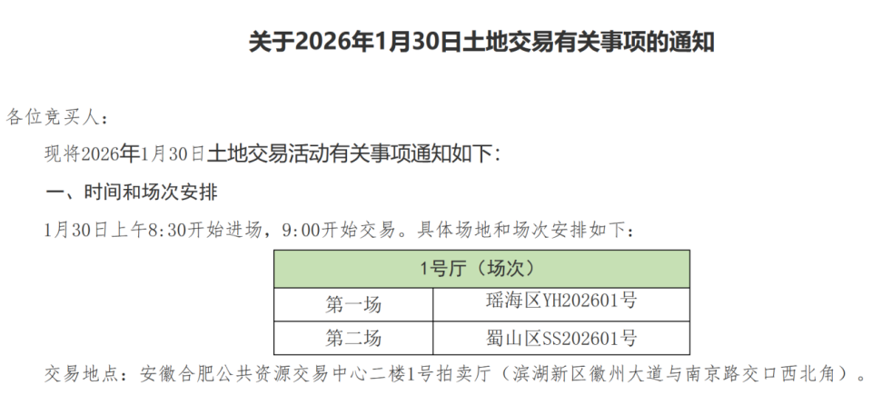 今天上午,合肥进行了2026年首场土拍(居住用地),有瑶海区裕溪路以南、唐桥东路以东的瑶海区YH202601号地块出让。