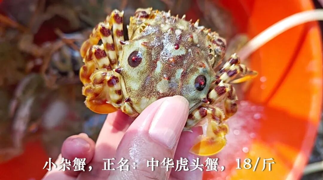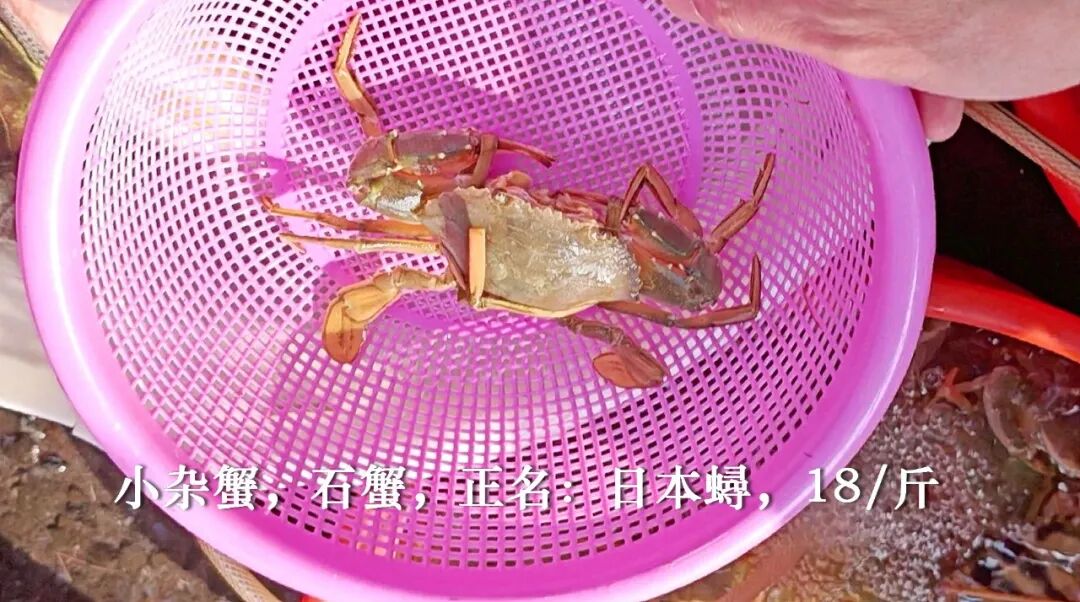 4、小杂蟹,18/斤。大部分是石蟹,正名:日本蟳,还有中华虎头蟹,和红花蟹。