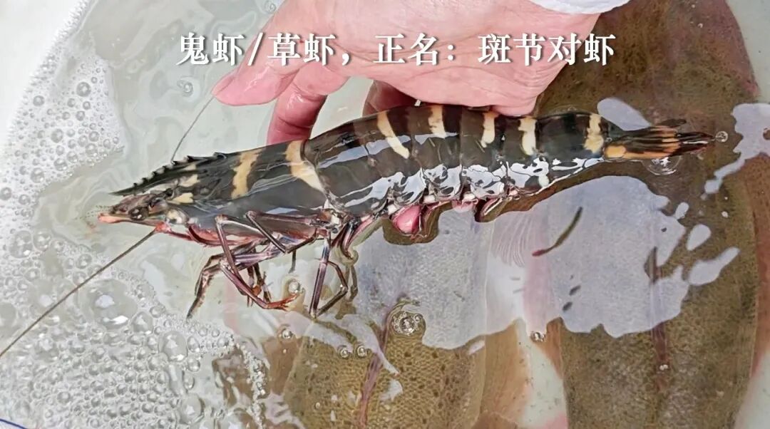 斑节对虾有两个常用俗名,小一点常叫草虾,体型大了以后,体色变异,就会被叫鬼虾。这条野生的很大,很漂亮,只吃一条也会有满足感。
