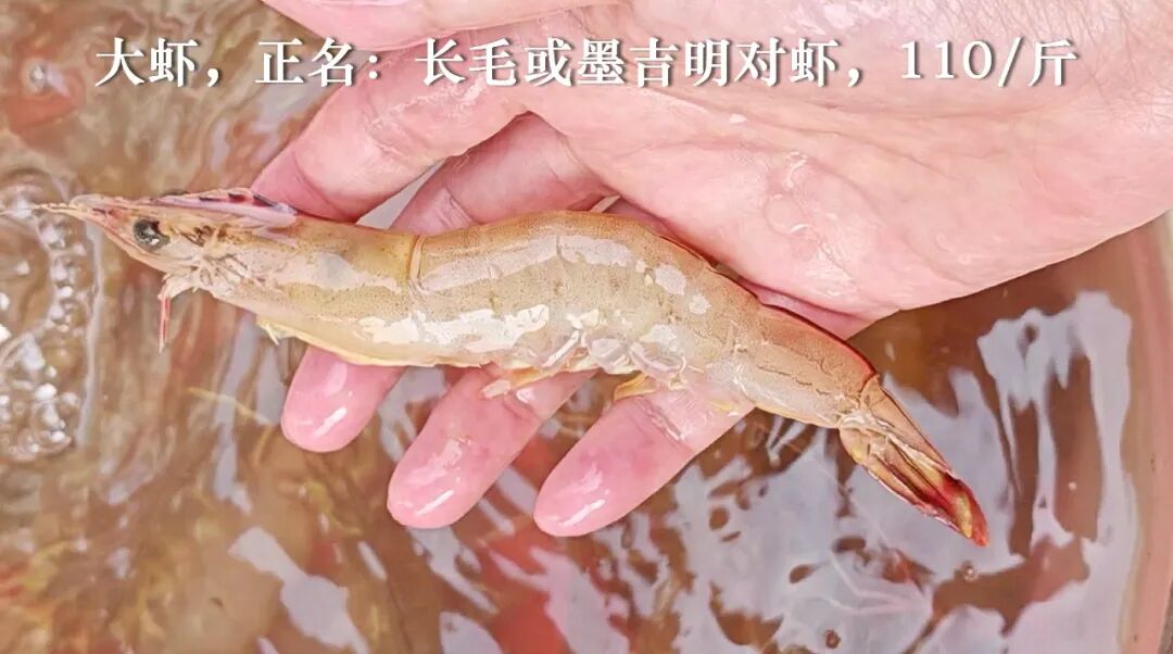 2、大虾,正名:长毛或墨吉明对虾,110/斤