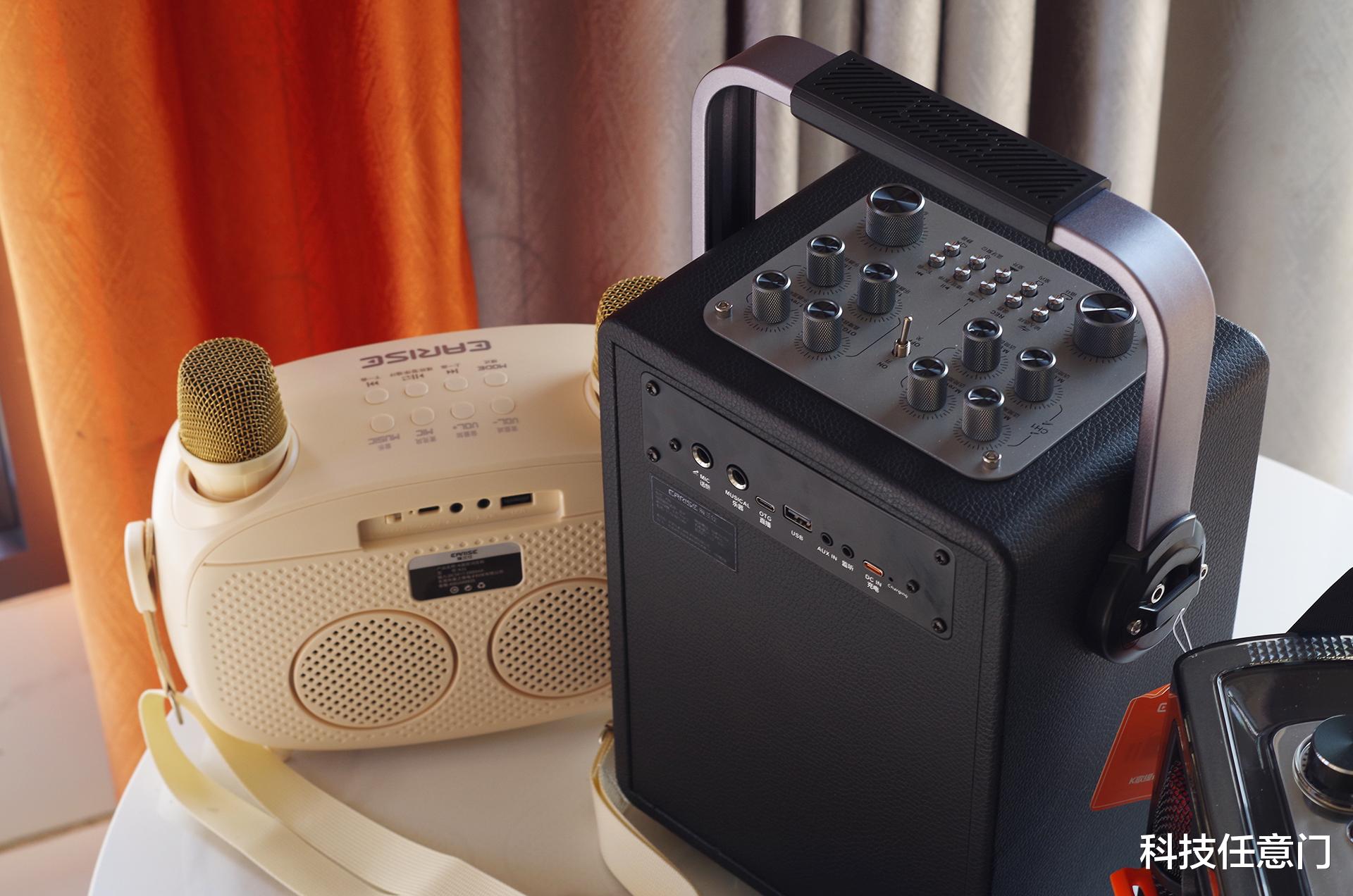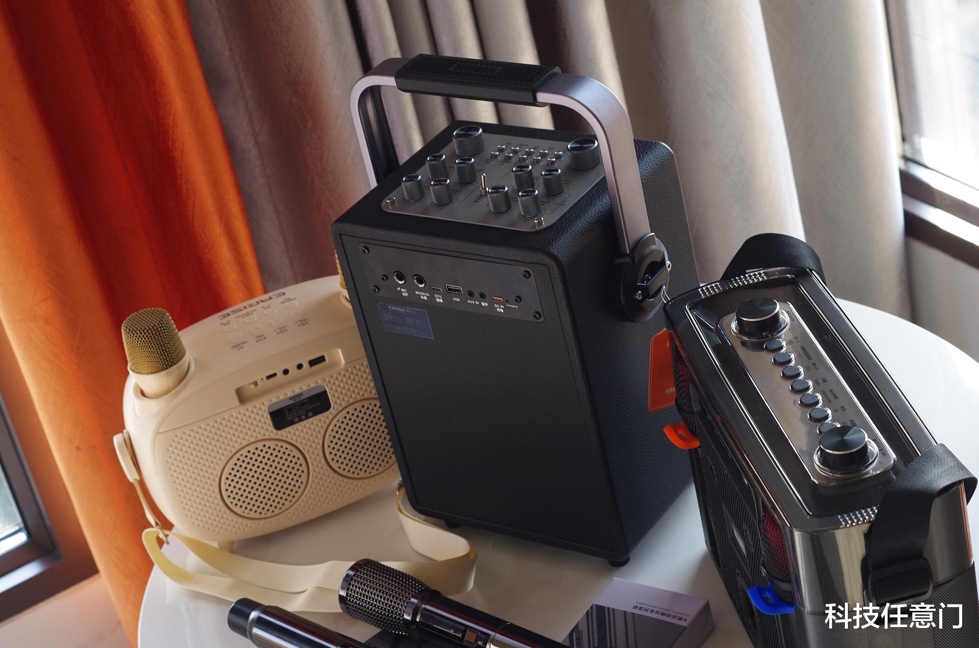 面向重度K歌爱好者、直播创作者及小型商演需求。搭载9000mAh大电池 + 80W三喇叭系统(5.25英寸中低音 + 双2英寸高音),支持6.5mm乐器/麦克风输入、耳机监听、OTG直连变声卡,甚至具备室内/室外双声场模式。其铝合金提手、U段防啸叫金属麦、蓝牙一键复位等细节,彰显专业级工程素养。