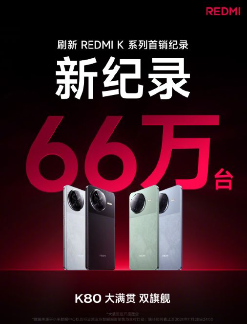 在竞争激烈的手机市场中,红米再次展现出了其强大的市场竞争力,红米K80系列首销成绩斐然,仅一天时间销量便突破了66万台,这一数据不仅直接打破了K系列首销的新纪录,更是彰显了消费者对该系列产品的高度认可
