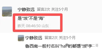 可有一位老乡的留言:“还有一个 “垓” ,方言是 “海”, 比如贾垓......济宁 带“垓” 的村子不少”,还有老乡说:是“垓”不是“海”......