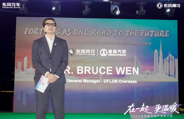 伴随着悠扬的旋律,东风柳汽进出口公司副总经理温华登台致辞:东风柳汽海外深耕35载,我们始终感恩每一位用户的信任与选择。正因为有大家的信赖,东风柳汽的产品才得以陪伴更多家庭的生活与旅途、见证更多企业的发展与壮大。同时,由衷感谢阿联酋经销商的大力支持和全情投入,让这一场跨越5000公里的“团聚”得以实现。未来,东风柳汽会继续保持务实奋斗的精神,用坚实可靠的品质与智能舒适的产品回馈用户。无论是创富助力还是温情守护,东风柳汽都将与全球用户并肩前行。
