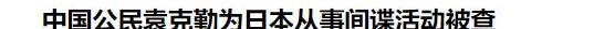 信息来源:环球时报——中国公民袁克勤为日本从事间谍活动被查