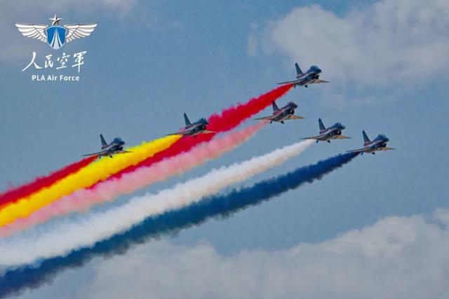 四机菱形队通场,紧凑编队如一把利剑划破长空;6号机“四点”横滚,表演机连续四点横滚90度,动作精准一气呵成;六机向下开花,六机以密集三角队形急速俯冲,并拉出彩烟,在200多米高度时,6架飞机向上跃升并散开,在空中绘出美丽的弧线……