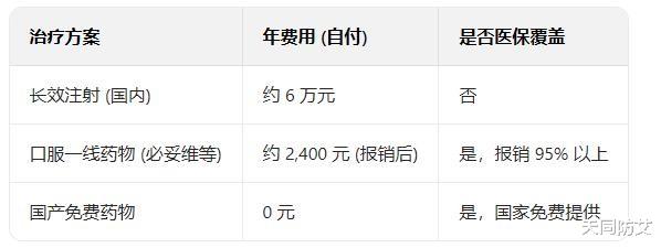 可别高兴太早,这低价仿制药目前只覆盖120个低收入和中等收入国家,咱们中国暂时没在这个范围内。国内现在能用到的长效药,比如卡替拉韦+利匹韦林组合,两个月打一次,一次费用大概9800元,一年算下来要6万左右,而且目前还没进医保,得全自费。
