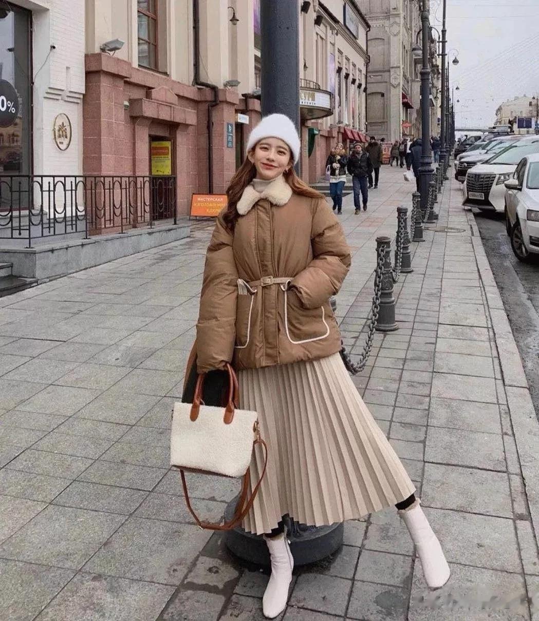 一、裙过膝更容易get得体感:藏住的是温度,显出的是风度冬天穿裙子,最怕“头重脚轻”。短裙配厚裤袜虽保暖,却容易让整体造型显得局促;而上海女生偏爱的过膝裙,恰到好处地平衡了温度与风度。