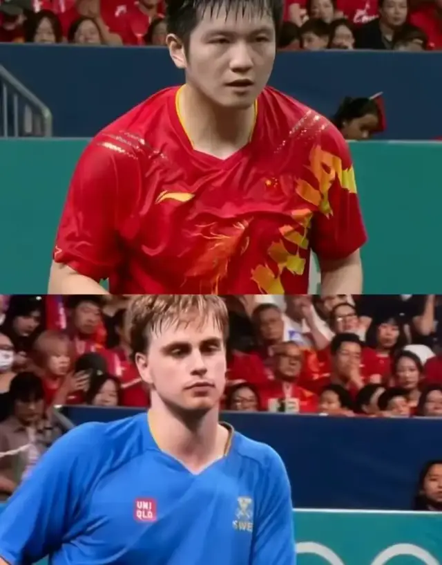 ▲“水灵灵”的樊振东VS穿速干衣清爽不贴身的的莫雷加德,吸水但难以蒸发的棉明显拖了后腿