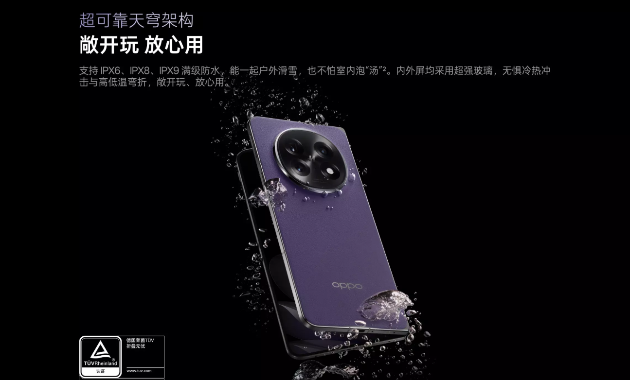 不过这低温环境下使用这个维度,国产折叠其实开始卷起来了。就好比OPPO在去年发布年初发布的Find N5 就可以在低至零下15℃的寒冷环境下依然能保持顺畅操作,屏幕没有明显延迟或卡顿,开合手感依旧平滑自然。高温场景上,Find N5 也被描述为能在高温高湿里稳定运行,甚至能承受最高85℃的高温与湿度,像汗蒸房温泉这种离谱环境也能顶住。