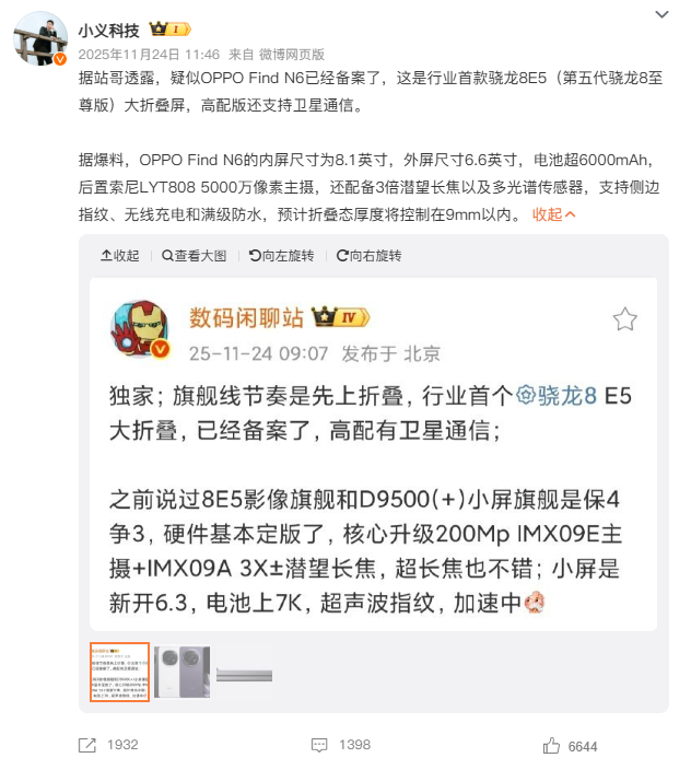 这也是我最近更关注 Find N6 的原因。按目前传闻方向,它不只是继续补齐轻薄和续航这些主力机基本功,更像是要把折痕这道心理门槛直接压下去。如果  Find N6 真能更早把无折痕体验端出来,那它的意义就不是对标某一台产品,而是在苹果之前把下一代折叠形态提前交卷。