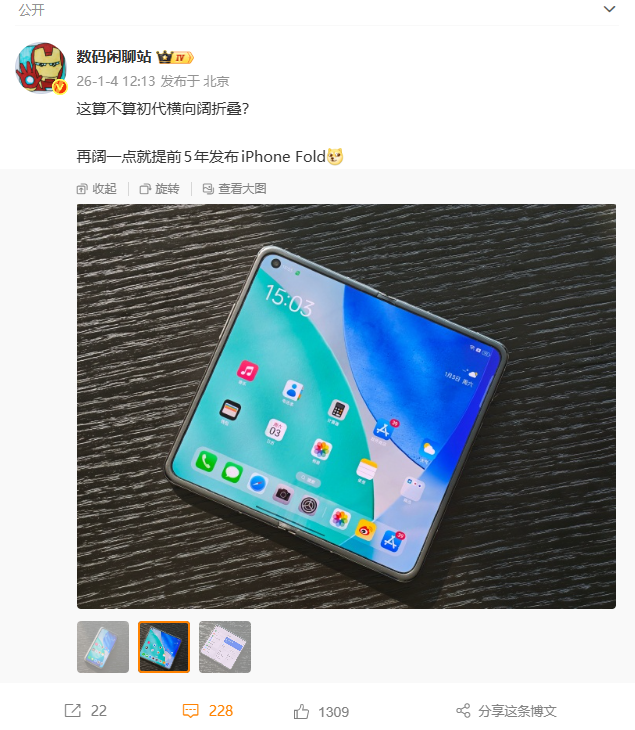 于是话题自然就回到明年的大趋势,26年基本可以确定是折叠屏的大年,苹果的下场和国产厂商的爆发,折叠屏很可能会迎来新一轮的全面升级。苹果入场会把行业标准往上抬,大家都会更认真地去卷轻薄、卷折痕、卷耐用。可如果苹果折叠屏真的更偏向明年下半年节奏,那对用户来说就会出现一个很现实的选择,要么等苹果把无折痕叙事做成行业标杆,要么还是先用上国产更早落地的无折痕体验。