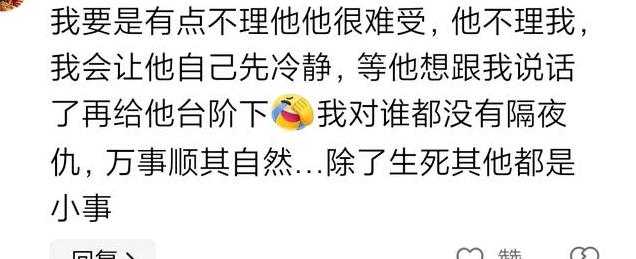 这时候的“冷暴力”,就需要夫妻两个人能够好好沟通。尤其是作为老公的男人,要找到老婆不理自己的原因所在,解开老婆的心结。而不是在你心里认为,吵一架这事就过了,该怎么样还怎么样。